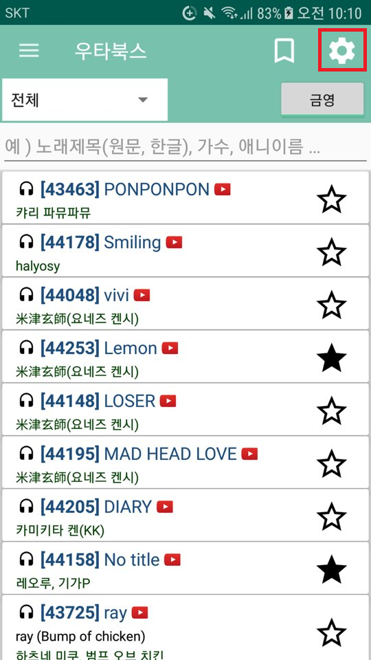 현재는 설정값이 스마트폰 기기에 저장이 됩니다. 따라서 같은 우타북스 계정을 사용 하여도 다른 스마트폰을 사용하게 되면 설정해둔 값이 각각 다릅니다.